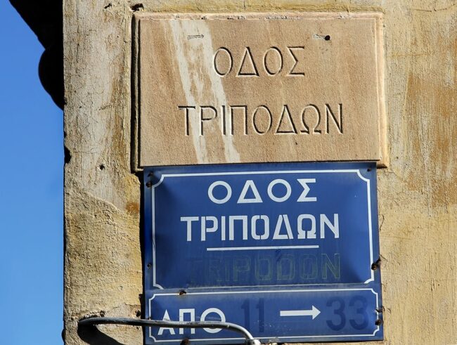 Η οδός Τριπόδων! Θεωρείται ο αρχαιότερος δρόμος της Αθήνας. Είναι μάλιστα γραμμένος στα βιβλίο με τα Ελληνικά ρεκόρ Γκίνες ως ο μακροβιότερος δρόμος της Αθήνας με την ίδια ονομασία.