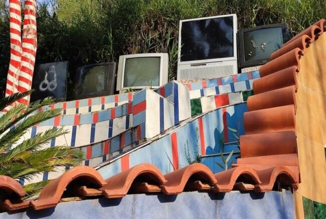 Εκτός από τα εκατομμύρια πλακάκια εντυπωσιάζουν οι τηλεοράσεις παλιάς τεχνολογίας που έχουν τοποθετηθεί στα δέντρα, στις ελιές και στα πεύκα δημιουργώντας ένα σουρεαλιστικό σκηνικό. Παλιά βίντεο, παλιά ποδήλατα τα οποία έχουν βαφτεί πολύχρωμα, ένα παλιό σιδερένιο κρεβάτι και πήλινα αγάλματα περασμένων δεκαετιών όπως ο κλασσικός μπεκρής.