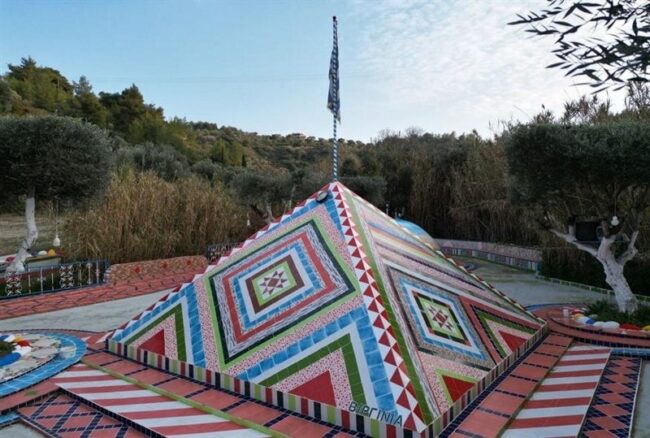 Στη βάση ενός εντυπωσιακού καραβιού αλλά και μιας πυραμίδας που φυσικά είναι όλα ντυμένα με πλακάκια υπάρχουν δύο ονόματα. «Λαμπρινή ήταν το όνομα της μητέρας μου και Βιργινία το όνομα της γυναίκας μου. Και οι δύο έχουν φύγει από τη ζωή και τους έχω αφιερώσει όλη αυτή τη δουλειά νύχτα μέρα»