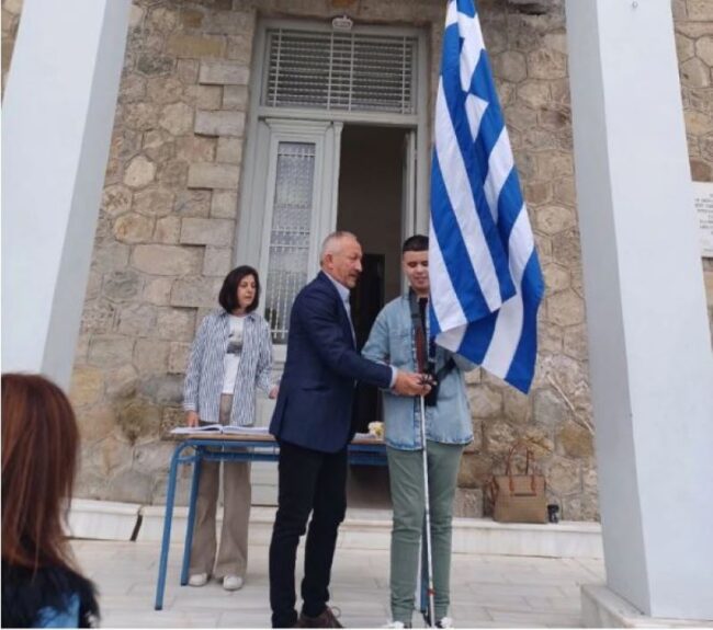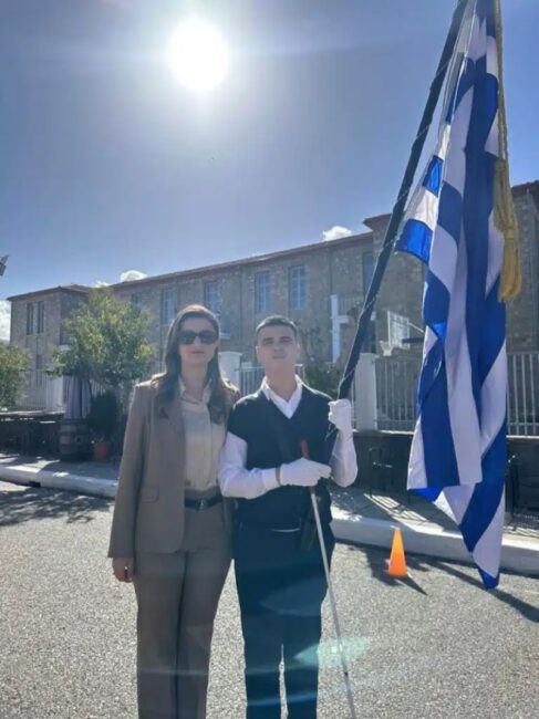 Η στιγμή που ο νεαρός μαθητής ύψωσε τη γαλανόλευκη, πλαισιωμένος από τους συμμαθητές του, προκάλεσε συγκίνηση και υπερηφάνεια σε όσους βρέθηκαν εκεί, αποδεικνύοντας πως η θέληση και η ψυχή μπορούν να ξεπεράσουν κάθε εμπόδιο