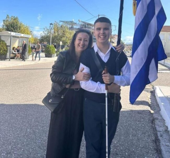 Ράγισαν καρδιές στη Γαβαλού του Αγρινίου, όπου ο τυφλός μαθητής της Γ’ Γυμνασίου, Ιωάννης Παπαθανασίου, στάθηκε σημαιοφόρος στη μαθητική παρέλαση για την εθνική επέτειο της 28ης Οκτωβρίου.
