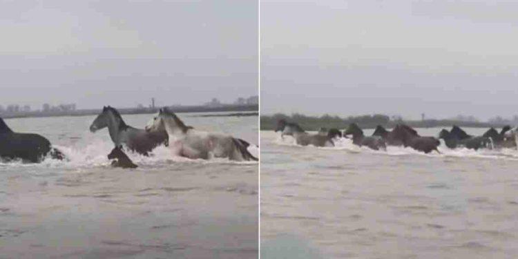 Σπάνιες εικόνες από το Δέλτα του Έβρου: Εντυπωσιακή στιγμή της φύσης με άλογα να διασχίζουν τον ορμητικό ποταμό