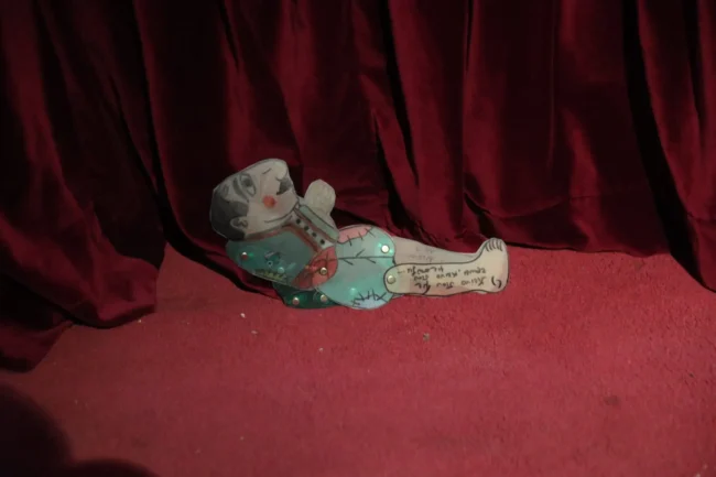 Στο φέρετρό του μάλιστα έχει τοποθετηθεί και μία φιγούρα του Καραγκιόζη. «Κείνο που με τρώει, κείνο που με σώζει…» γράφει πάνω.